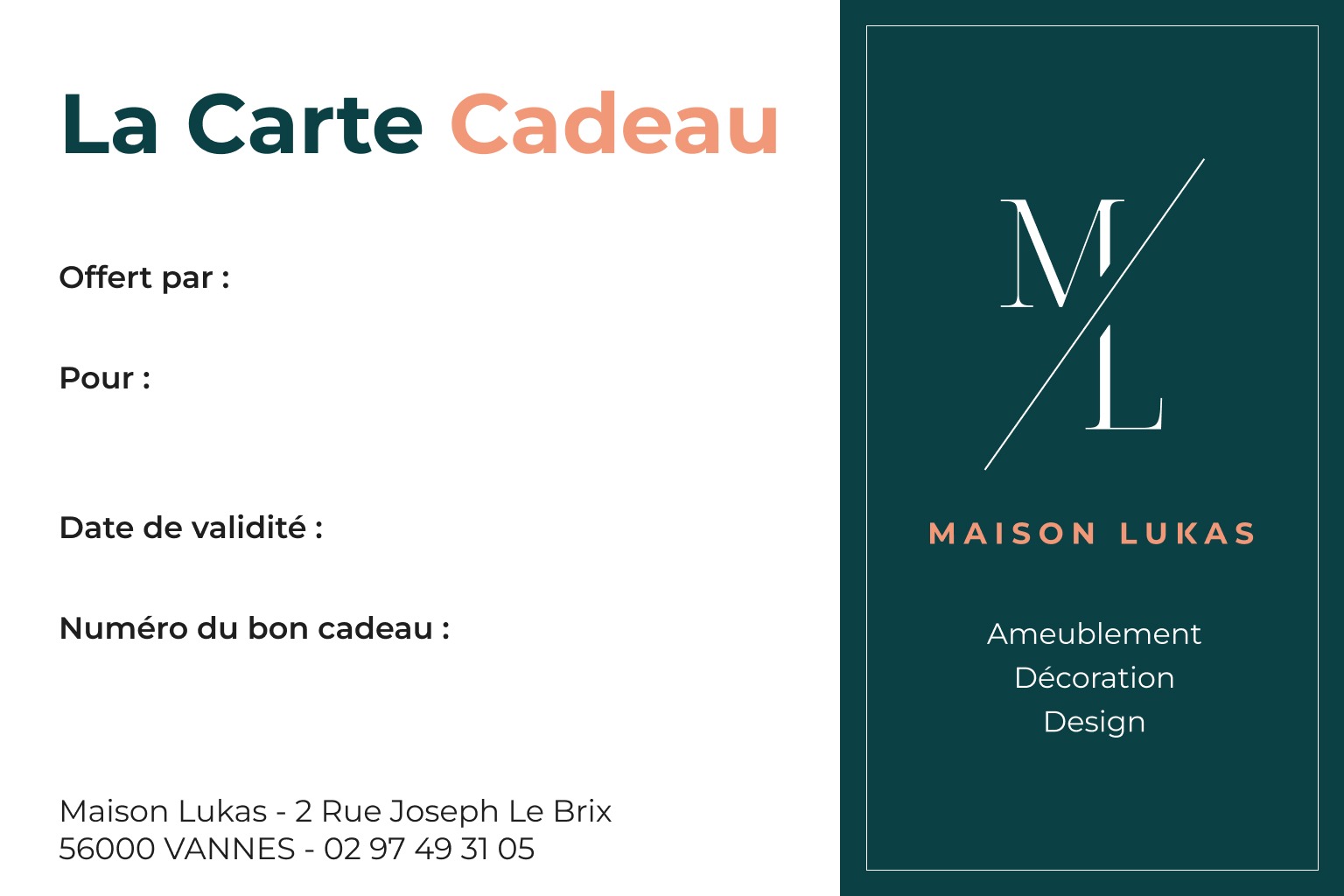 Parce qu’un beau cadeau est avant tout une belle attention, la carte cadeau Maison Lukas est l’invitation parfaite à découvrir un univers raffiné dédié à la décoration, au design et à l’art de vivre.